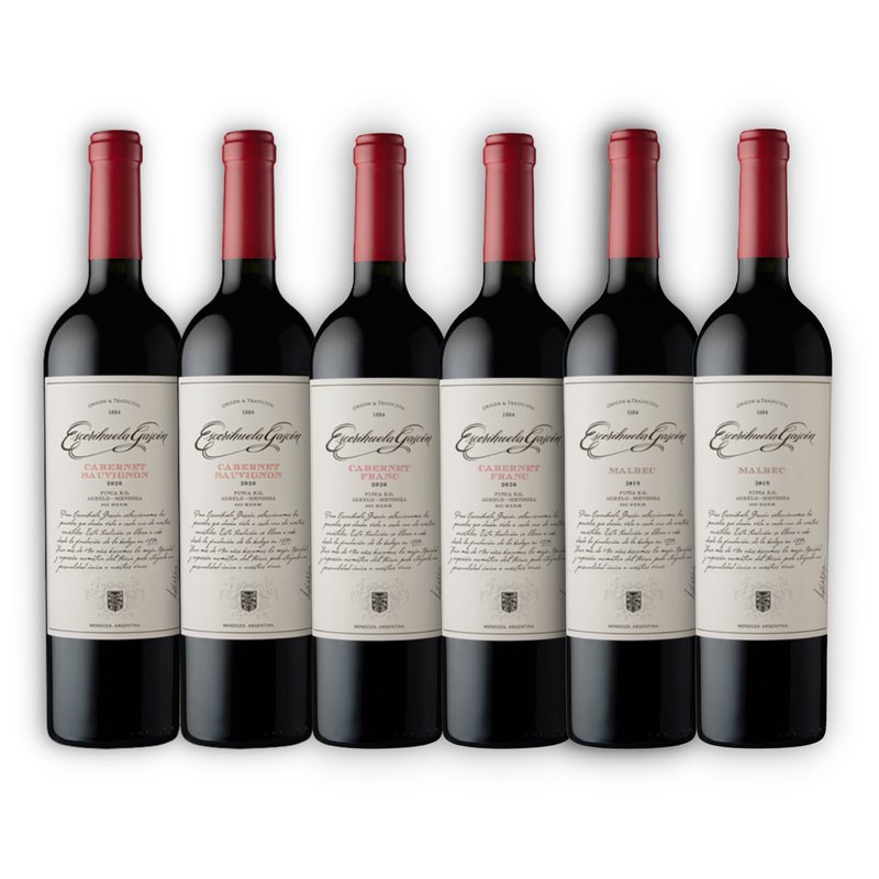 Incluye: 2 Botellas Vino Escorihuela Gascón Malbec 750ml +2 Botellas vino Escorihuela Gascón Cabernet Franc 750ml + 2 Botellas vino Escorihuela Gascón Cabernet Sauvignon 750ml.